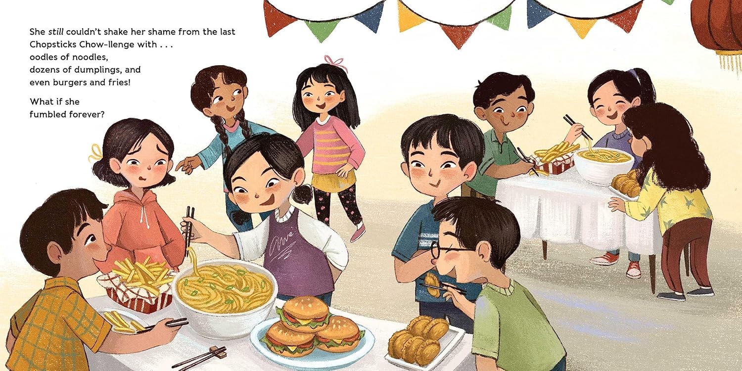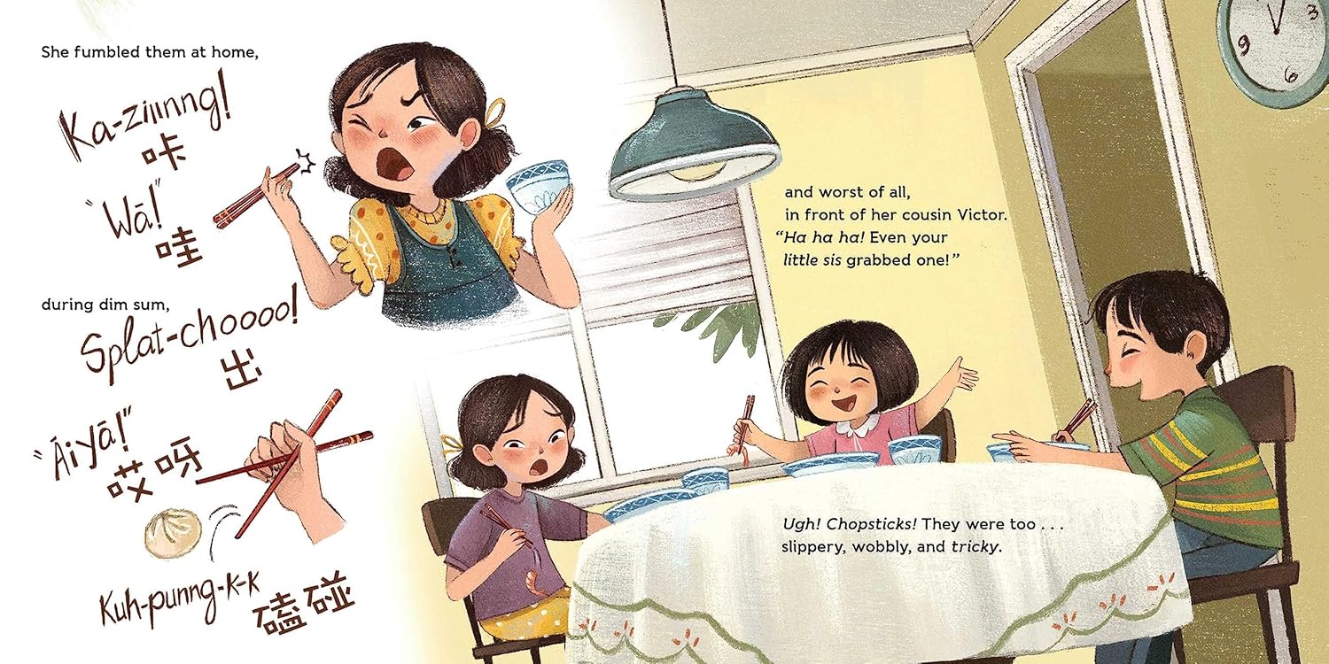 A young Chinese American girl uses creative STEAM-powered problem-solving to master chopsticks so she can pick up her dumplings and eat them, too, in this charming and laugh-out-loud picture book perfect for fans of the Amy Wu series. Jenny Chow struggles with chopsticks-aiya, those slippery, oh-so-tricky chopsticks! But cousin Victor`s birthday party is just around the corner, along with her family`s annual chopsticks challenge. Jenny doesn`t want to be the only Chow who never learns how to use the utensils. She`ll do whatever it takes to prove she can hold her own in her family`s long-held tradition-no matter how many experiments she wobbles and fumbles through.